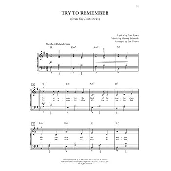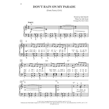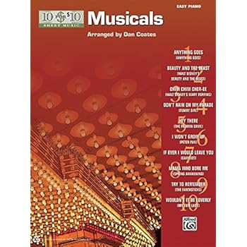 10 for 10 Sheet Music editions are the smartest, most economical choices for building your music library. Grow your repertoire and have lots of fun learning ten famous tunes from the stage and screen. This collection features simplified piano arrangements of crowd-pleasing songs at a price that can't be beat. Complete lyrics are included, and the arrangements are expertly crafted by renowned pop piano arranger Dan Coates to be easily played, yet impressively full-sounding. Titles: Anything Goes (Anything Goes) * Beauty and the Beast (Walt Disney's Beauty and the Beast) * Chim Chim Cher-ee (Walt Disney's Mary Poppins) * Don't Rain on My Parade (Funny Girl) * Hey There (The Pajama Game) * I Won't Grow Up (Peter Pan) * If Ever I Would Leave You (Camelot) * Mama Who Bore Me (Spring Awakening) * Try to Remember (The Fantasticks) * Wouldn't It Be Loverly (My Fair Lady).